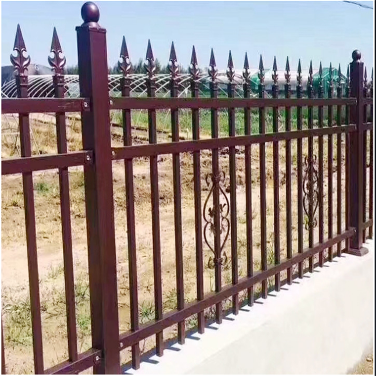 围墙锌钢护栏按样式可分为:四横梁、四横梁带装饰花、三横梁、三横梁带装饰花、两横梁等;小区外墙锌钢护栏,按顶部的处理分为:拍尖、铝尖、双弯、单弯,也可不做任何处理,加盖柱帽即可。