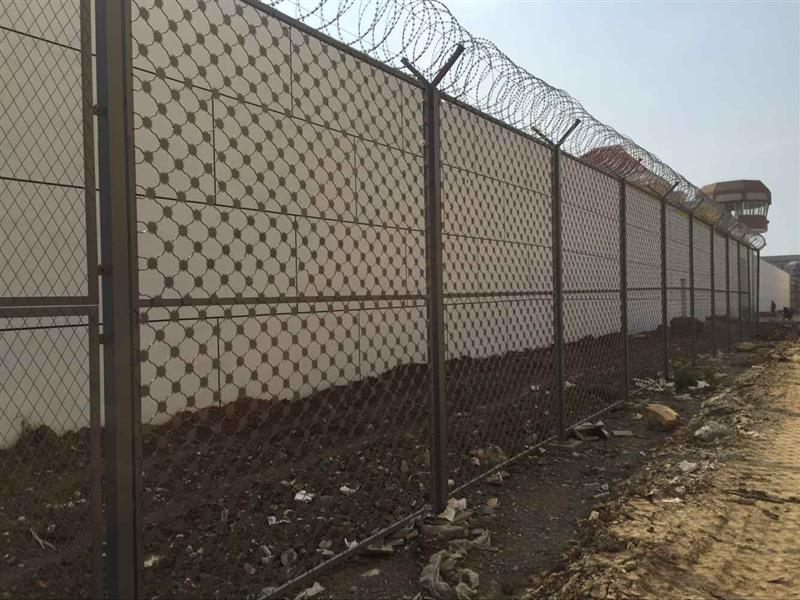 在实际工程中,围墙做到表面平整光滑的基础上,电气专业应注意照明配电箱、监控摄像机、防雷箱、电网控制箱、配电线槽桥架等敷设与安装的隐蔽性。应防止形成攀爬点,导致降低围墙有效高度,给监管安全造成重大隐患。因此本规范规定的围墙表面平整光滑,不只是自身平整光滑,还要求不能有其他的附属突出物。#监狱高墙隔离网 #戒毒所隔离网