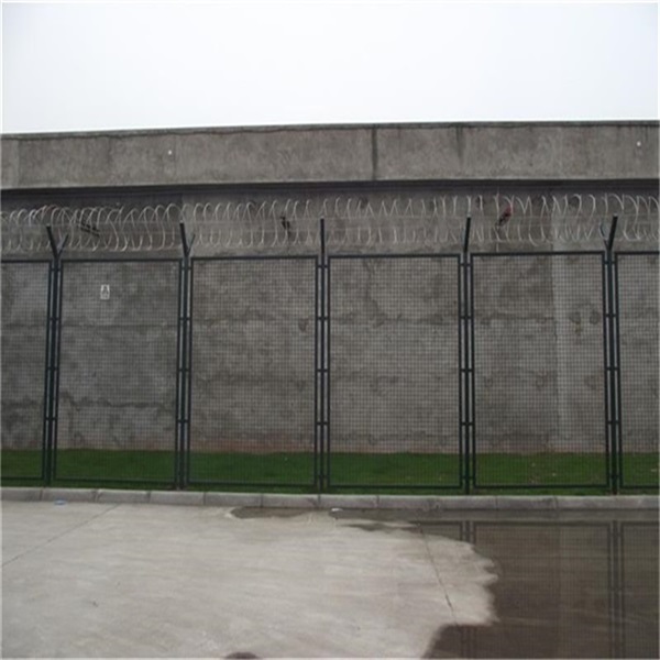 首先把网片焊接在铁管框架上,框架是方管或者圆管焊接成的框架结构,在框架上焊接用于个立柱连接的连接板,用防盗螺栓与立柱连接。为了保证监狱隔离网片的防拆卸性能,网片连接方式采用特制防盗紧扣件,有效防止人为的破坏性拆卸。